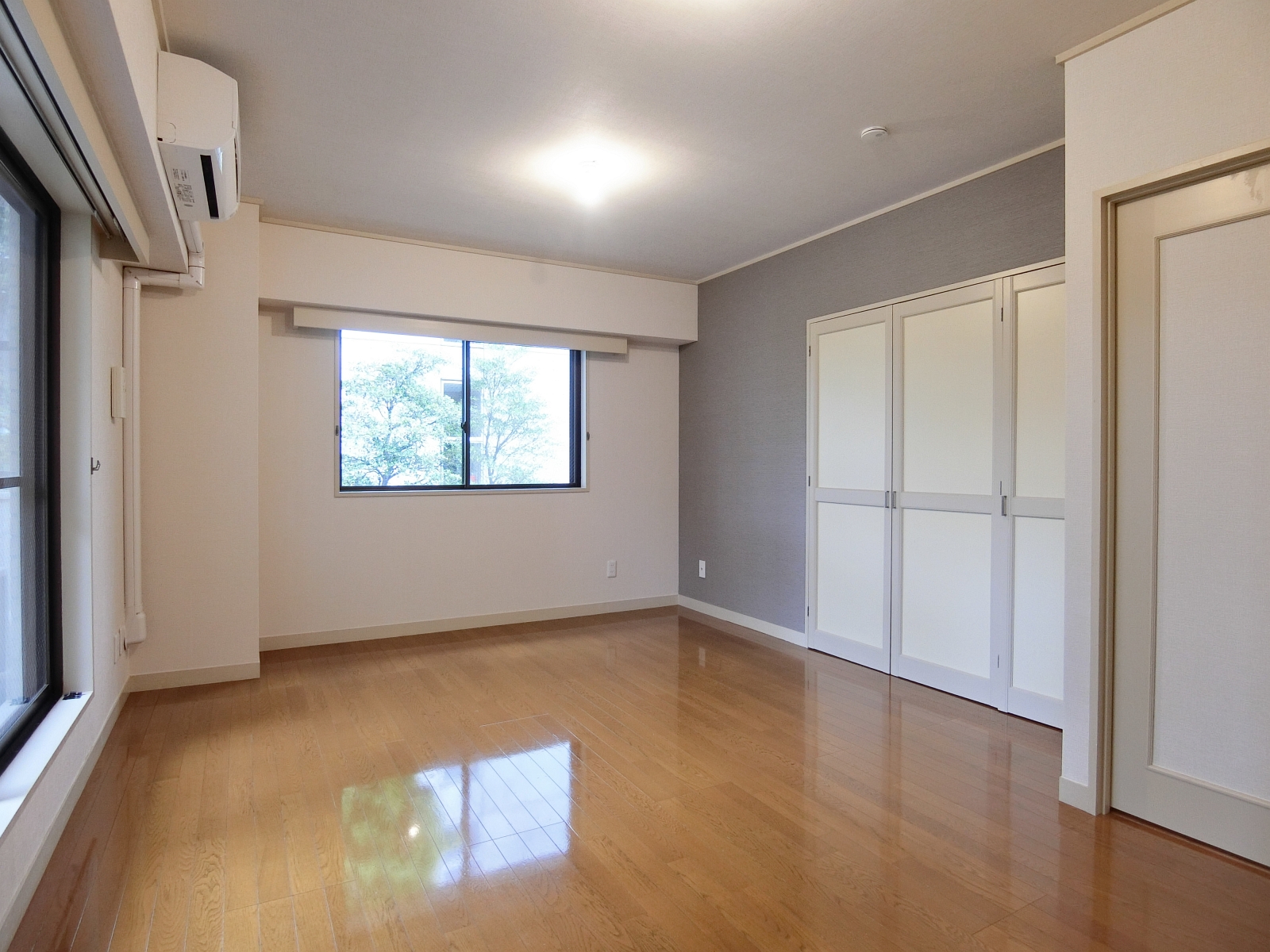 都市ガス 全室エアコン(4基) ガス3口・グリル・オーブン付き 床暖房(リビング) 浴室暖房 クローゼット 各窓カーテンBOX 遮音性オールフローリング 録画機能付きTVドアホン